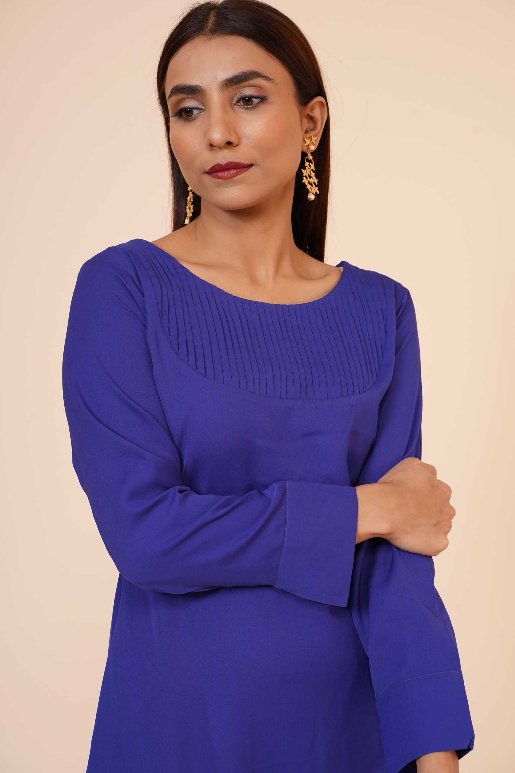 – Pattern : Round neck, Pin Tucks pleated, Stylish draped, knee-length