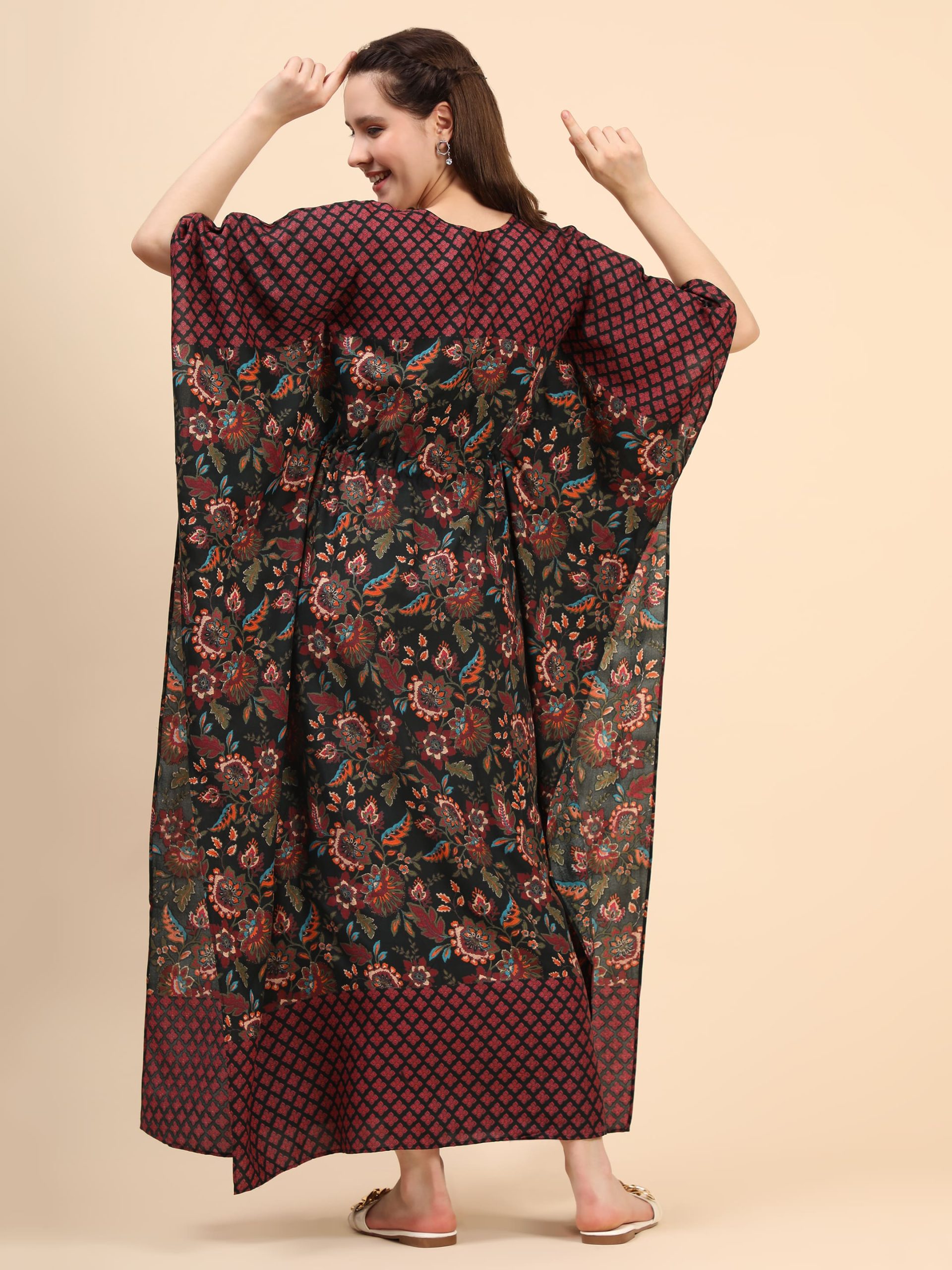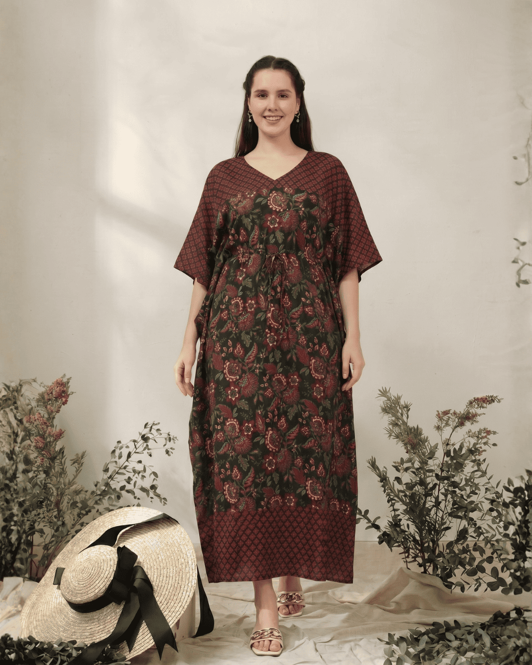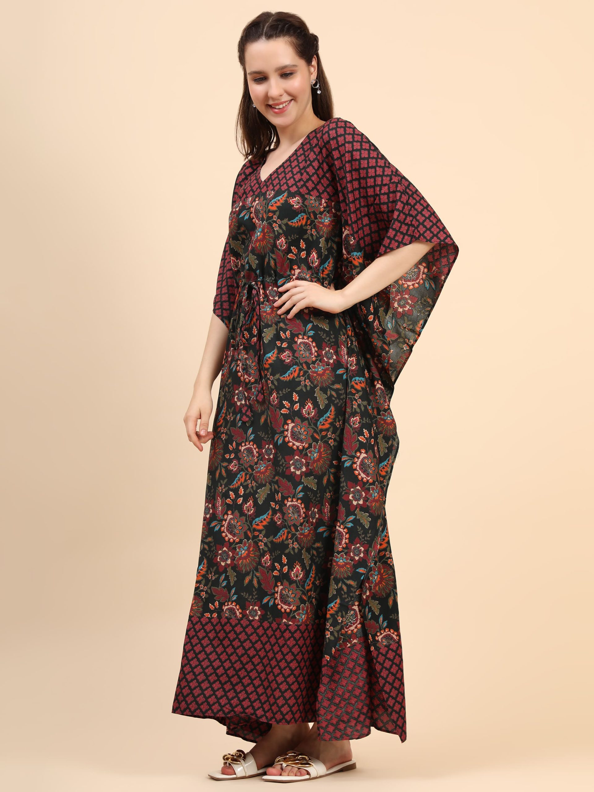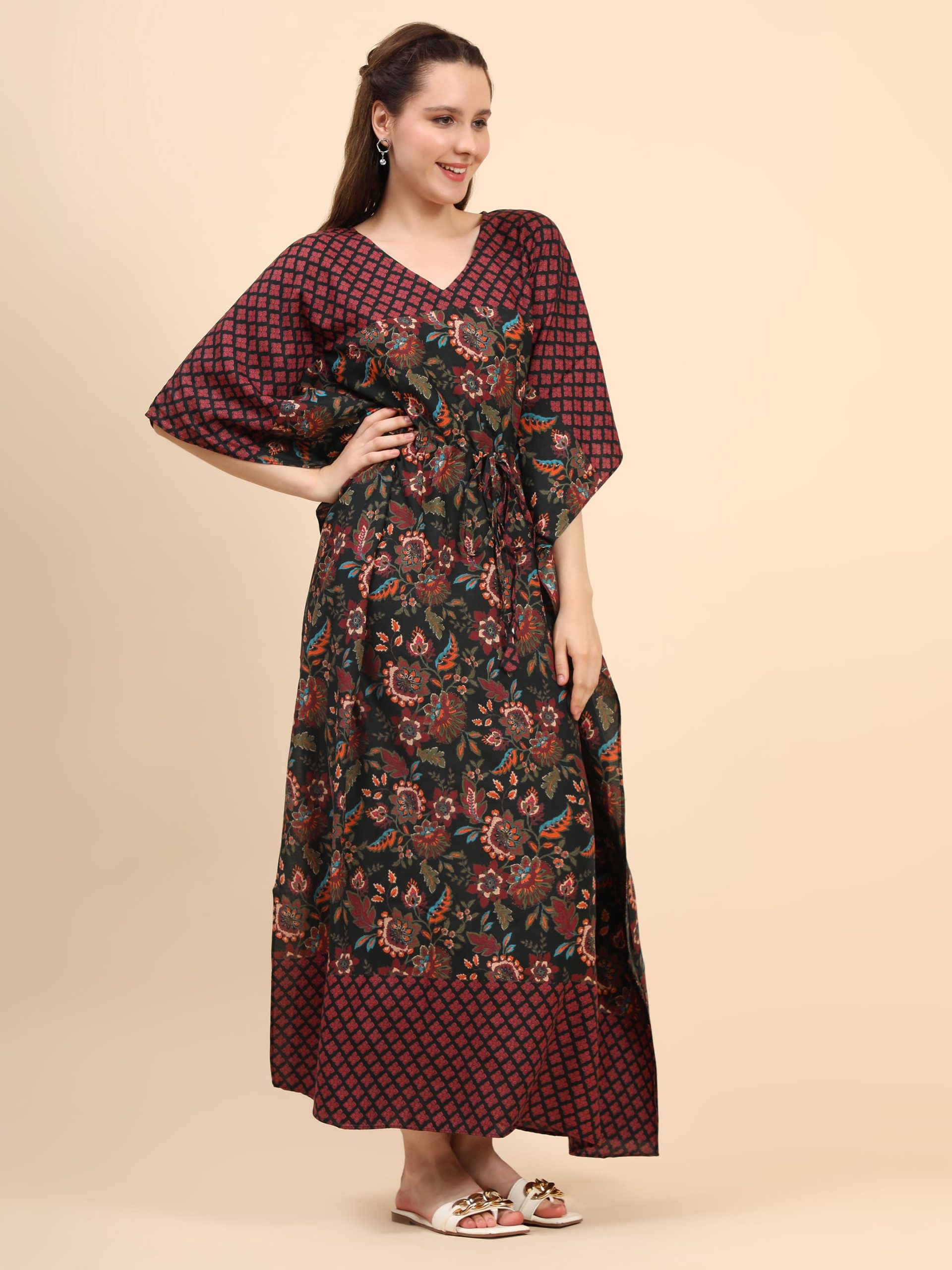 Green Floral Rayon Long Kaftan: The Ultimate Blend of Style and Ease