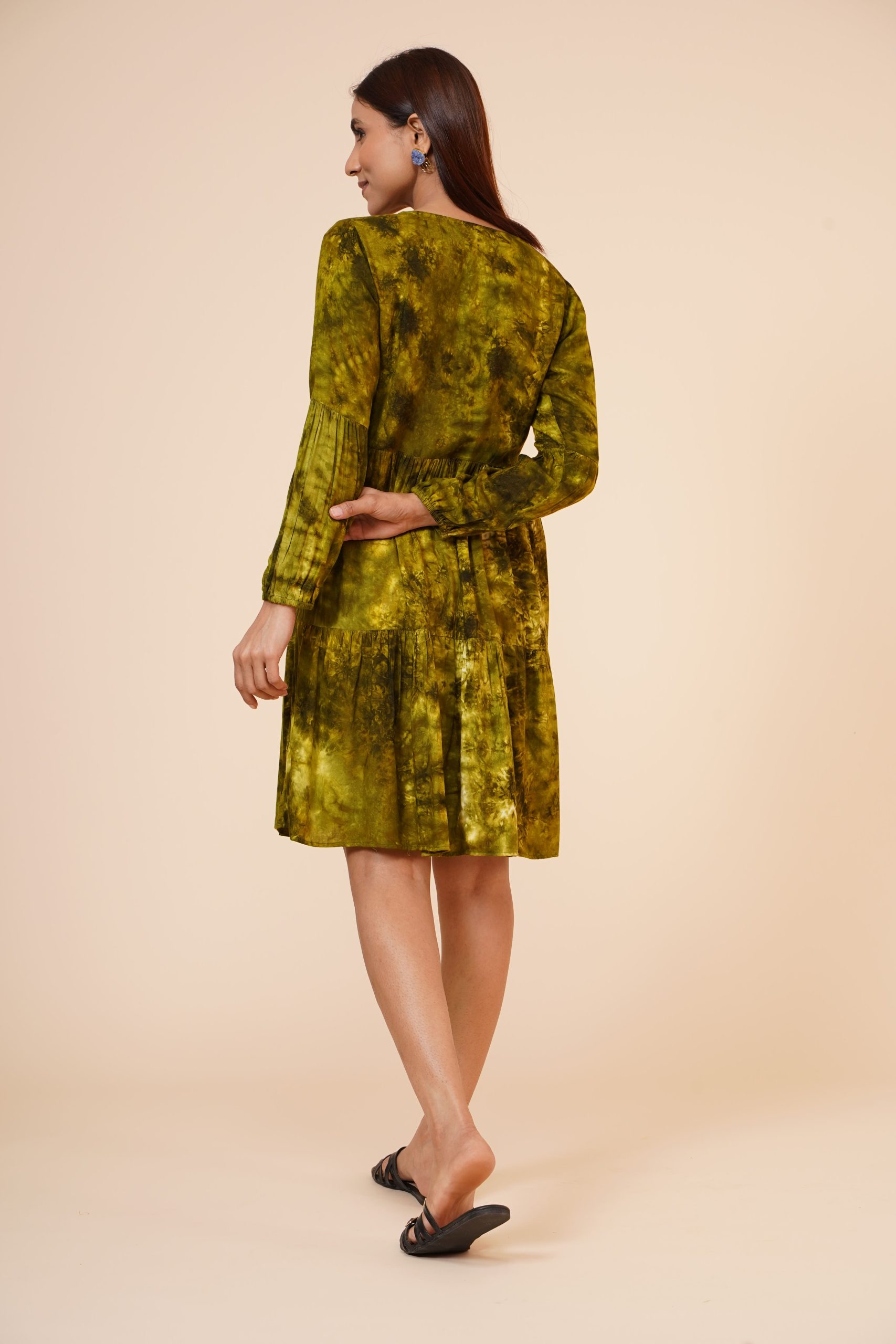 The Charm of the Green Tie Dye Kurti with Balloon Sleeves