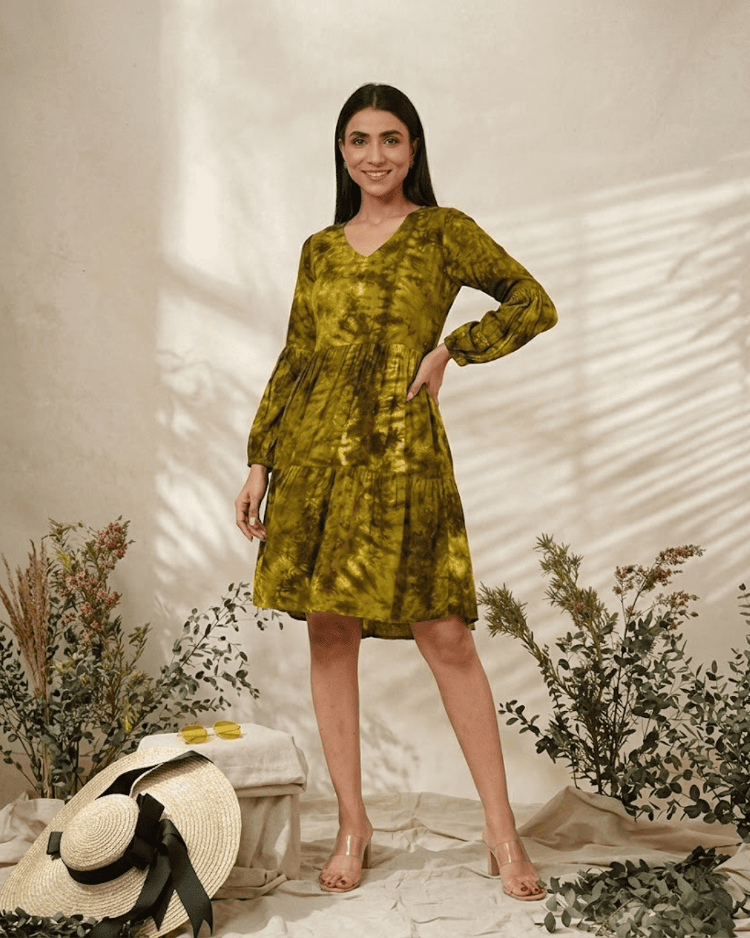 One of the greatest advantages of owning a Green Tie Dye Kurti with Balloon Sleeves is its incredible versatility. Because it bridges the gap between a dress and a traditional tunic, you can style it in 1 of several captivating ways: