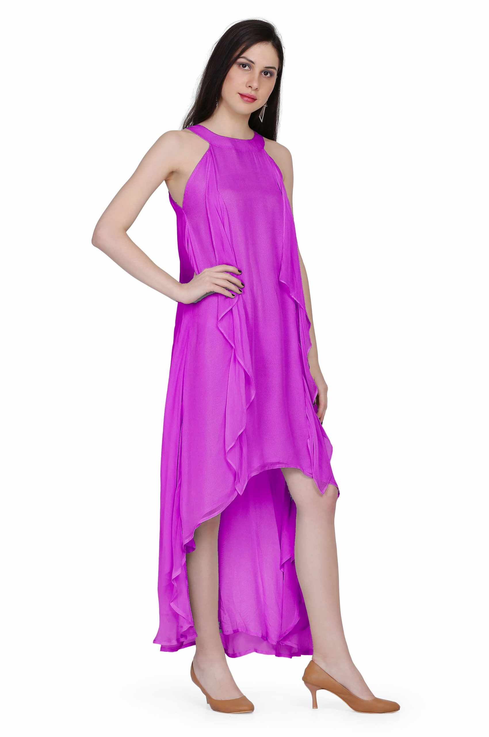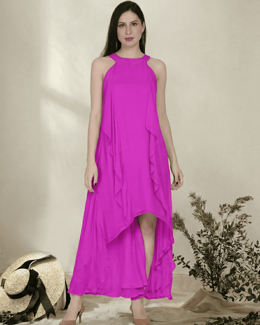 The Women’s Halter Neck Ruffle Georgette Party Dress in Mauve is more than just a dress; it is an investment in your confidence. Discover your unique charm today at Miracolos.