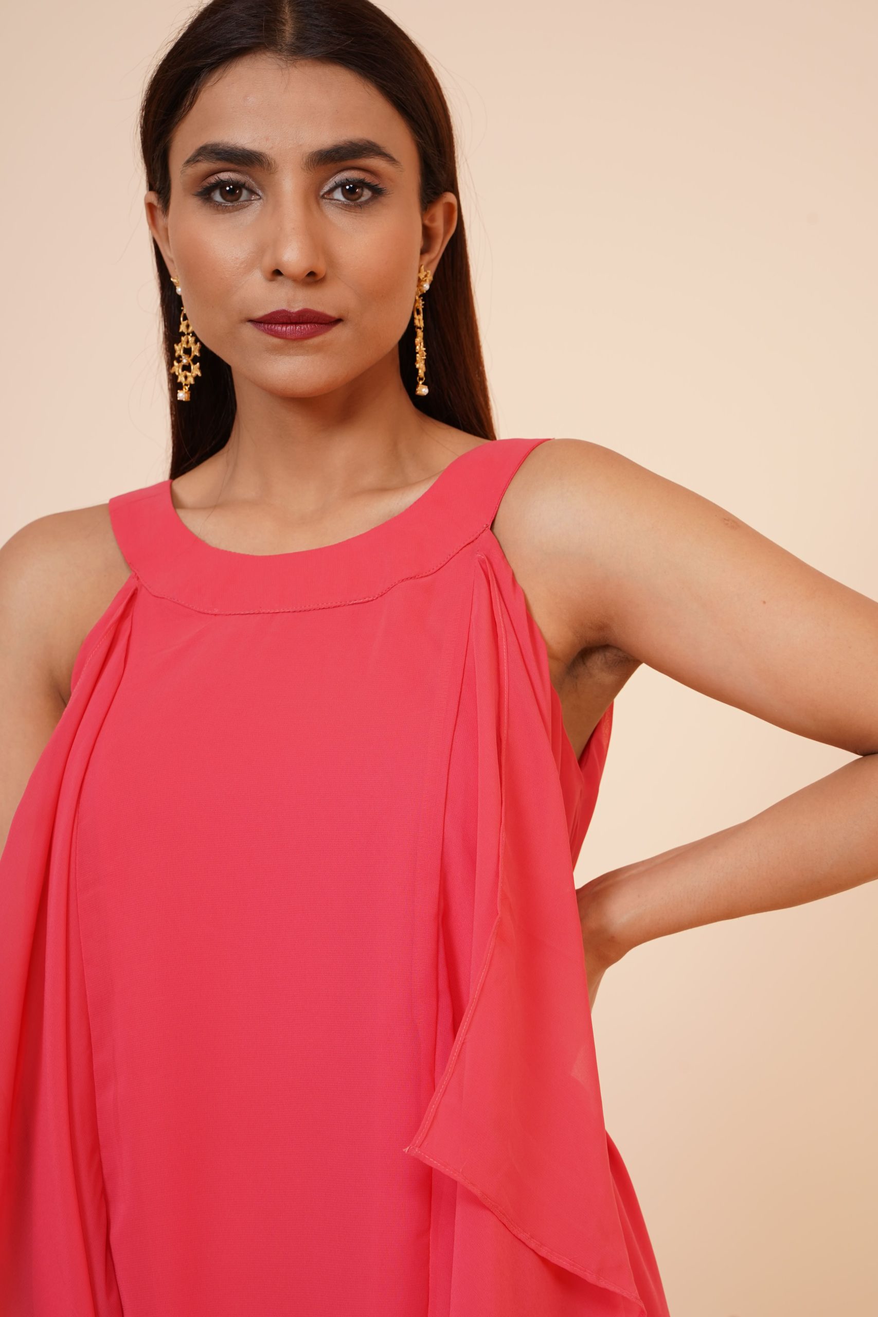By choosing the Women’s Halter Neck Ruffle Georgette Party Dress in Peach, you are opting for a garment that transitions effortlessly from day to night. At Miracolos, we prioritise fabrics that offer both a premium feel and lasting durability, and this woven georgette masterpiece is no exception.