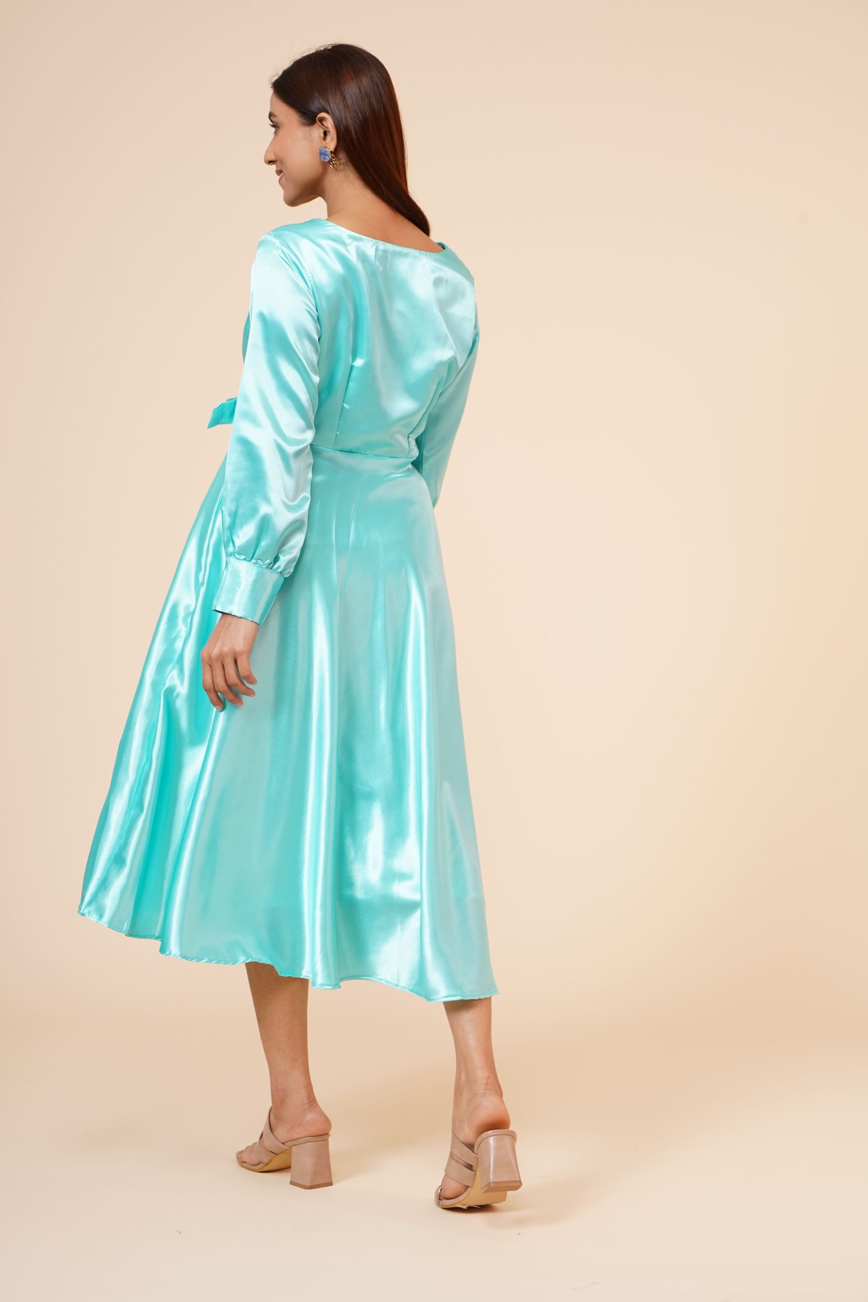 Styling the Sky Blue Empire Line Satin Wrap Dress