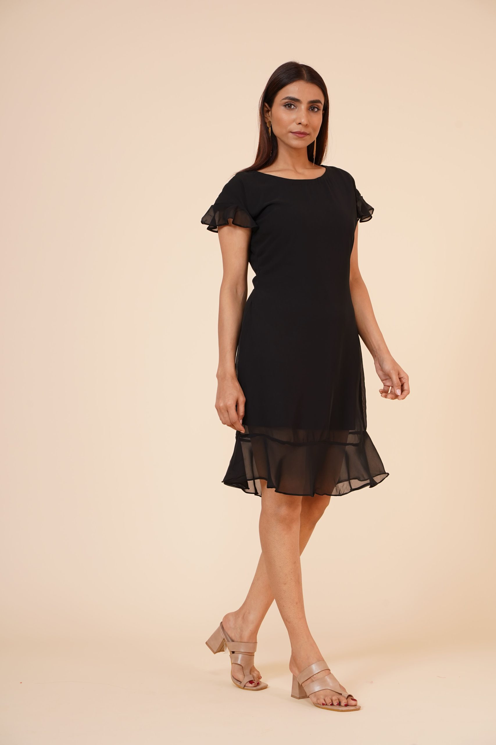 Premium Georgette & Hosiery: This Women’s black midi casual dress is soft against the skin and stays wrinkle-resistant throughout the day.