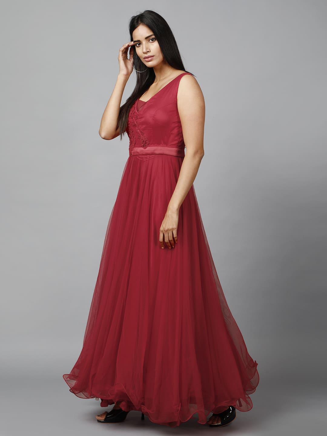 | Product Name | Red Net Embroidered Bridesmaid Gown |